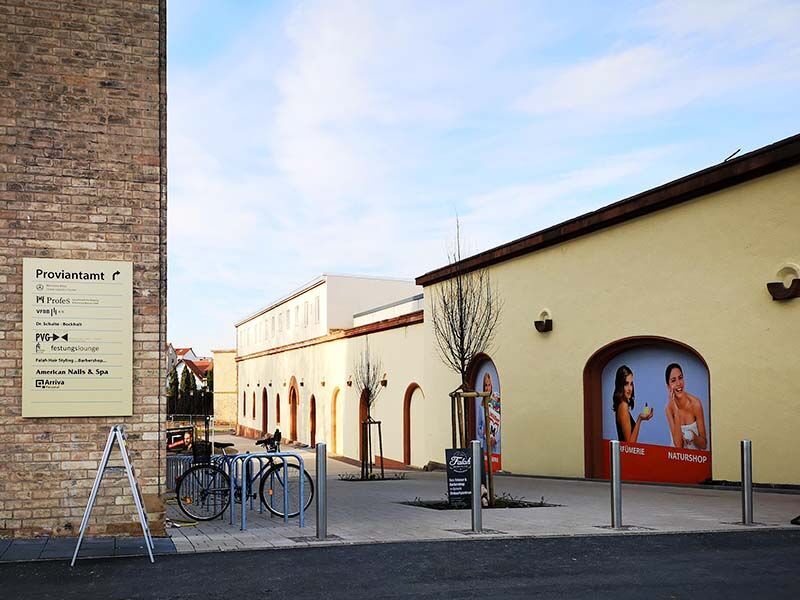 Weiterbildung im Kulturdenkmal: Als Standort für unseren Kooperationspartner ProfeS dient das „Ehemalige Proviantamt“ An Fronte Diez 2, das komplett saniert und modernisiert wurde. Es ist Teil des Ende 2018 neueröffneten Fachmarktzentrums in der neuen Germersheimer Stadtmitte mit seinen Supermärkten, Drogerien, Bekleidungsgeschäften und gastronomischen Angeboten. Neben den vielfältigen Einkaufsmöglichkeiten haben Sie in den angrenzenden Grünanlagen an der Queich auch die Gelegenheit, sich schön zu entspannen oder an den Sportanlagen auszupowern. Aber hauptsächlich sind Sie ja zum Lernen hier: Ein breites Spektrum an Weiterbildungen ermöglicht Ihnen eine passgenaue Qualifizierung ganz nach Ihren Wünschen. 24-monatige Umschulungen ergänzen das Angebot.